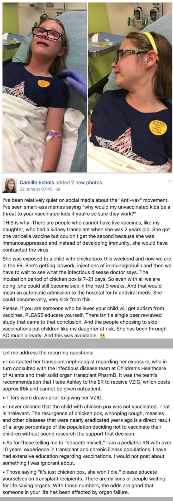 Mom gets real in Facebook post about why the anti-vaxxer movement is so dangerous for her daughter.